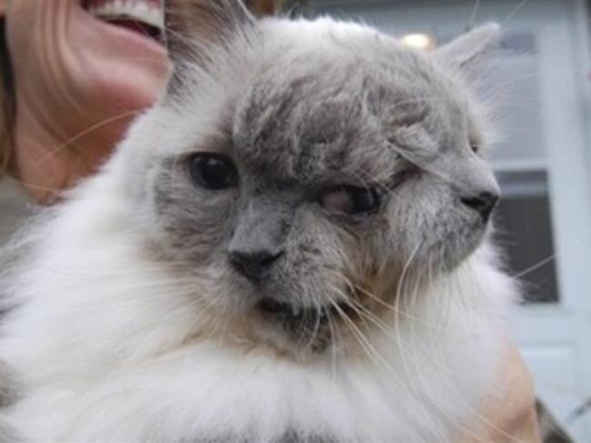 Se trata Frank y Louie, el gato con dos bocas, dos orejas y tres ojos más anciano del mundo.