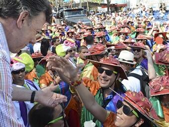 El presidente Santos rompe protocolo en plena Batalla de las Flores