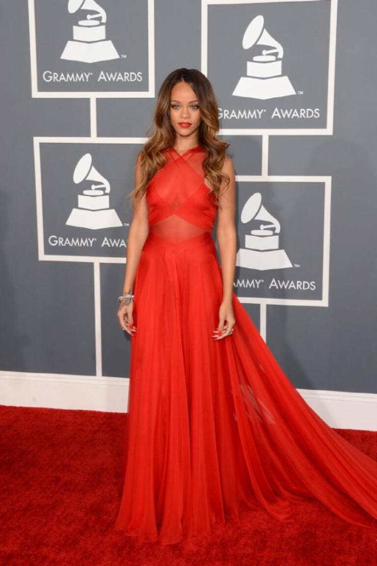 Rihanna también estuvo entre las mejor vestidas por su traje rojo fuego que le dio un toque deslumbrante. Fue un diseño de Azzedine Alaia que resultó sofisticado y muy elegante, dándole un estilo femenino.