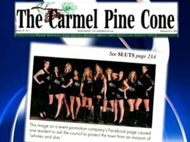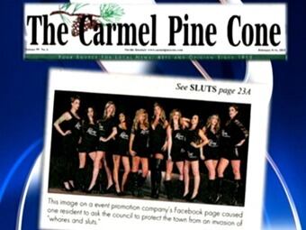 El Carmel Pine Cone, un periódico que se reparte gratuitamente provocó la indignación por la impresión de Sluts por encima de una foto de mujeres en su primera página.