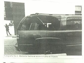 Según el documento, el impacto de bala dejó huella en la ventanilla posterior derecha y debido al blindaje de 4 centímetros de grosor, el proyectil no pudo ingresar al interior de vehículo