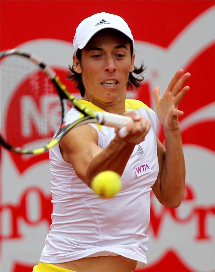 La tenista italiana Francesca Schiavone devuelve la pelota a la canadiense Sharon Fichman hoy, martes 19 de febrero de 2013, en un partido por la Copa Claro Colsanitas WTA, en Bogotá (Colombia).