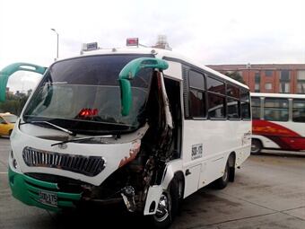 A la salida del Portal de Suba del sistema Transmilenio, un bus articulado chocó contra una ruta del Gimnasio George Berkeley, sin dejar personas heridas