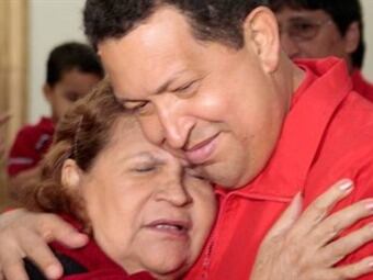 El féretro de Hugo Chávez, cubierto con la bandera venezolana, apareció en la entrada del Hospital Militar, y apoyada en él la madre del exmandatario, Elena Frías, lloraba mientras sonaba el himno.