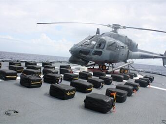 La droga fue rescatada del mar luego que las personas que se movilizaban en una lancha tipo Go Fast la arrojaran al ser detectados por la unidad americana que informó a la Armada que desplegó un helicóptero de una de las fragatas que patrullan el área