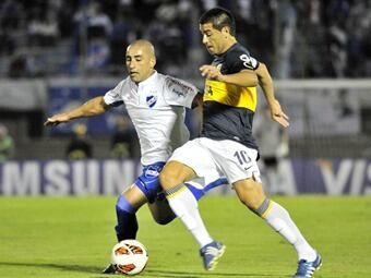 Con diez hombres y gol de Riquelme, Boca le ganó a Nacional de Montevideo