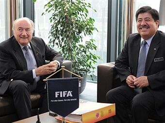 Joseph Blatter, presidente de FIFA, y Jérôme Valcke, secretario general, recibieron a los dirigentes colombianos en Zúrich, quienes llevaron el folio con los requisitos exigidos para organizar el Mundial de Futsal de 2016