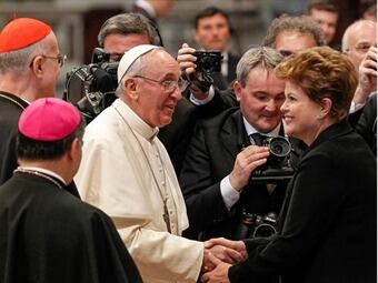 Rousseff se reunió durante cerca 30 minutos con el papa argentino en la Biblioteca del palacio apostólico y se convirtió así en la segunda Jefe de Estado que se reúne con el pontífice, después de que el pasado lunes Francisco recibiese a la presidenta de Argentina, Cristina Fernández
