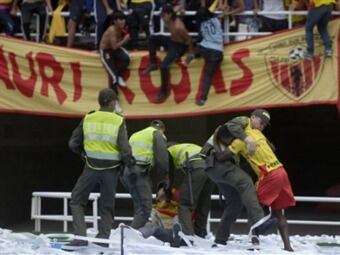 Según versiones de las autoridades, lo hinchas pereiranos entraron, destruyeron camillas, afectaron a otros pacientes del centro médico y terminaron hiriendo a los hinchas del equipo rojo