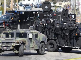 La policía de EE.UU. aumentó hoy el perímetro de seguridad en torno a una casa en la que se cree que puede estar el segundo sospechoso de las bombas del maratón de Boston el pasado lunes, que dejó tres muertos y unos 170 heridos. Hasta las inmediaciones de la casa se ha desplazado una tanqueta y un helicóptero sobrevuela constantemente la vivienda. Las calles están totalmente vacías, siguiendo las indicaciones de las autoridades que han declarado un toque de queda que implica el cierre de colegios, universidades, comercios, así como la suspensión del transporte público. En declaraciones a Efe, un vecino que pidió no ser identificado, expresó su "miedo" cuando empezó a escuchar el ruido de helicópteros sobrevolando la zona. "Me temí lo peor", señaló el vecino, que indicó que no ha escuchado disparos, ni ningún tipo de detonación. Los únicos vehículos que se ven circular son los de policía y algunos automóviles particulares de residentes que abandonan sus casas. La policía ha hecho un llamamiento a través de los medios de comunicación, con llamadas robotizadas y Twitter, para pedir a los ciudadanos de que se mantengan en un lugar seguro. El toque de queda afecta a la ciudad de Boston, que también está desierta, Waltham, Newton, Belmont y Allston Brighton y la ciudad universitaria de Cambridge. Las autoridades han declinado por el momento facilitar la identidad de los dos sospechosos que han sido identificados por los medios estadounidenses como dos hermanos de origen checheno y que residían legalmente en Estados Unidos. El nombre del fugado es Dzhokhar A. Tsarnaev, un joven de 19 años que residía desde hace al menos un año en Cambridge, una zona universitaria aledaña a Boston. El otro sospechoso, que fue abatido la pasada noche durante la persecución policial, sería Tamerlan Tsarnaev, de 26 años, y hermano del prófugo. El sospechoso fallecido al parecer tenía adherido al cuerpo explosivos, lo que explicaría que llegara al hospital con heridas ocasionadas por detonaciones, según la cadena CNN. La policía está actuando con un gran despliegue de personal y vehículos blindados en la zona de Watertown, además de con mucha cautela por el temor a que el fugado haya plantado explosivos o los cargue consigo