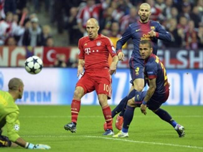 El 3-0 para el Bayern llegó en momentos en que el Barcelona intentaba sacudirse y acababa de tener una buena ocasión en un un saque de esquina en los pies de Marc Bartra. Fue un contragolpe que comandó Ribery y concluyó Robben dentro del área, en una jugada en la que hubo una obstrucción antirreglamentaria de Müller contra Jordi Alba dentro del área azulgrana