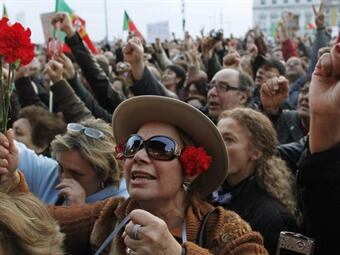 Portugal se llena de claveles rojos y gritos contra la política de austeridad