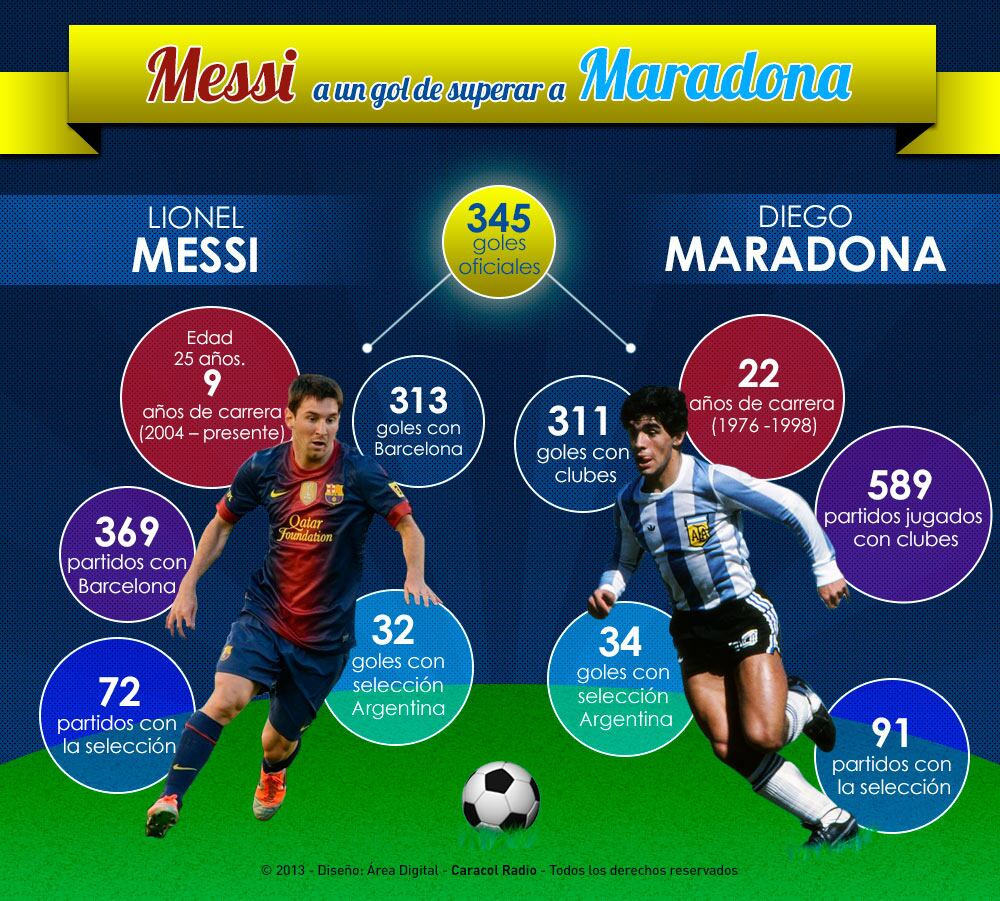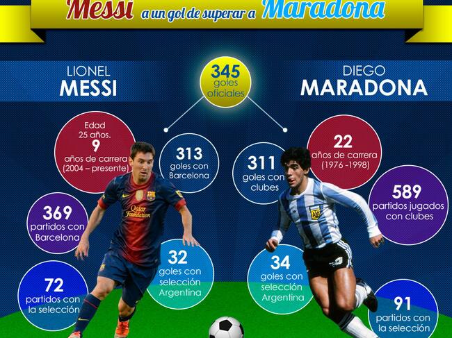 El goleador de Barcelona se acerca cada vez más a superar los 345 goles del ídolo y compatriota suyo, Diego Armando Maradona. Compare sus números aquí.