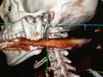 “Si el objeto hubiera golpeado sólo 1 cm más de un lado, la paciente se habría convertido en una tetrapléjica. Y si hubiera golpeado 1 cm más del otro lado o hubiera alcanzado una arteria del cerebro, ella habría muerto", dijo Allan da Costa, un neurocirujano que operó a la mujer