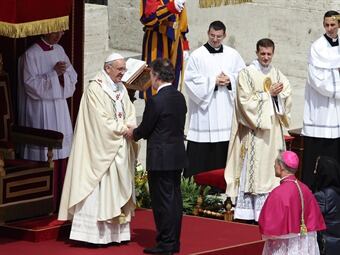 Indudablemente, el debilitamiento de la guerrilla por la acción constante de nuestras fuerzas ha contribuido a esa posibilidad", señaló Santos. Hoy, Francisco, durante el rezo del Regina Coeli, que sustituye al ángelus durante el tiempo de Pascua, hizo votos para que "inspirados en el ejemplo y concordia" de santa Laura Montoya, los colombianos "continúen trabajando por la paz y el justo desarrollo de su Patria". El Obispo de Roma también abogó para que por intercesión de madre Laura Montoya, el Señor conceda "un nuevo impulso misionero y evangelizador a la Iglesia". Santos acudirá al Vaticano acompañado de su esposa, Clemencia Rodríguez Munera y sus tres hijos (Martin, María Antonia y Esteban) y un séquito del que formarán parte la canciller, María Ángeles Holguín, y el presidente de la Cámara de Representantes, Augusto Posada. Tras la audiencia con el papa, Santos se reunirá con el secretario de Estado vaticano, el cardenal Tarcisio Bertone. Después regresará a Colombia. Antes de la audiencia con el papa, Santos asistirá a una misa que oficiará en el Vaticano el cardenal arzobispo de Bogotá, Rubén Salazar, y concelebrará con Octavio Ruiz, secretario del Consejo Pontificio para la Promoción de la Nueva Evangelización.