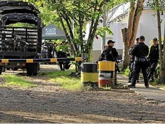 A esta hora la policía junto con el ejército hace un barrido al lugar para detectar la presencia de posibles explosivos dejados por los guerrilleros en su ataque
