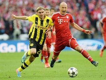 El Bayern Múnich se impuso al Borussia de Dortmund en la primera final alemana en la historia de la Liga de Campeones gracias a un gol del holandés Arjen Robben a falta de dos minutos para la conclusión de un duelo brillante que parecía destinado a la prórroga (1-2)