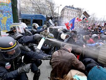 Cientos de manifestantes lanzaron botellas contra la Policía al término de la marcha en Francia.