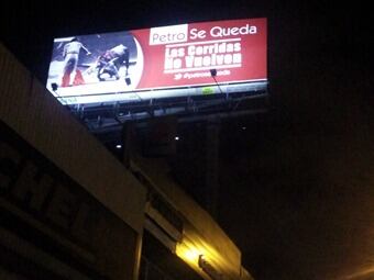 De acuerdo con Andrea Padilla, vocera de Animal Naturalis, con esta valla un colectivo de organizaciones animalistas de la Plataforma ¡Alto! Buscan respaldar los avances que en materia de defensa de los animales ha logrado la Administración del alcalde Gustavo Petro. “Hemos querido una vez más, esta vez de manera más explícita, e incluso polémica manifestar ese respaldo al alcalde en momentos en que enfrenta un proceso en la Procuraduría, y una presión constante por parte de los medios de comunicación”, dijo. Padilla aseguró que detrás de esta valla no hay ni respaldo ni recursos de la Administración Distrital, y que cuentan con el apoyo económico de organizaciones animalistas europeas. “Se llama Libera, es una organización que actúa en España, y que hace parte de una organización más grande holandesa que se llama CAS. De ellos proviene el apoyo económico”, indicó. Para este lunes la Plataforma ¡Alto! Promueve una ‘ciber acción’ en Twitter en la que invitan a quienes respaldan la gestión del alcalde Petro a dejar sus mensajes con la etiqueta #Petrosequeda