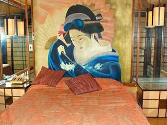 El hotel tenía cuartos temáticos: un palacio moro y otro egipcio, y una habitación japonesa, entre otros. Cada uno estaba decorado de manera extravagante con baldosas, jacuzzi, luces sutiles y espejos en las paredes y los techos