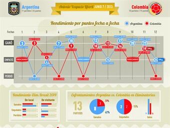 Rendimiento de Colombia y Argentina en las Eliminatorias 2014