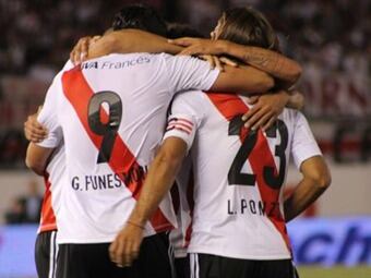 Juan Iturbe y Manuel Lanzini marcaron los goles del equipo riverplatense y alcanzó en el primer puesto al Newell''s Old Boys que este lunes enfrentará al descendido Unión.