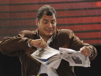 Esto viene sucediendo en Ecuador. Desde hace varios años, el presidente Rafael Correa ha querido silenciar a aquella que considera opositora. Su tolerancia a la crítica y a la información que no lo favorecen es nula. No desaprovecha oportunidad para insultar y descalificar a periodistas y medios. Rompe periódicos e invita a los ciudadanos a que no los lean. Tacha a sus directores, comunicadores y directivos de organizaciones que defienden la libertad de expresión de corruptos, mentirosos, cobardes, sicópatas... y otros epítetos impropios de un gobernante. Promueve y apoya leyes que limitan la libertad e independencia de los medios. Utiliza medidas administrativas para ejercer presión. También presiona a la empresa privada para que no paute en los que son objetivos y críticos. Demanda a unos y otros por vías penales y civiles. En febrero del 2012, la Corte Nacional de Justicia, en sentencia que resolvió la demanda interpuesta por el mandatario, confirmó la condena al pago de cuarenta millones de dólares contra el periódico El Universo y sus directivos, y la condena a tres años de prisión contra estos y el periodista Emilio Palacio por una columna publicada en ese mismo diario el 6 de febrero del 2011