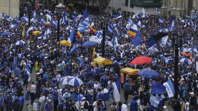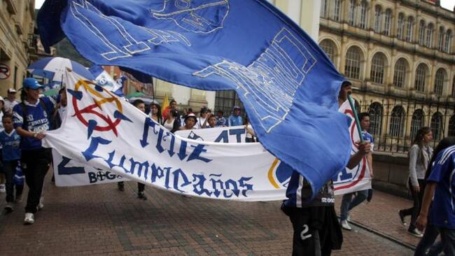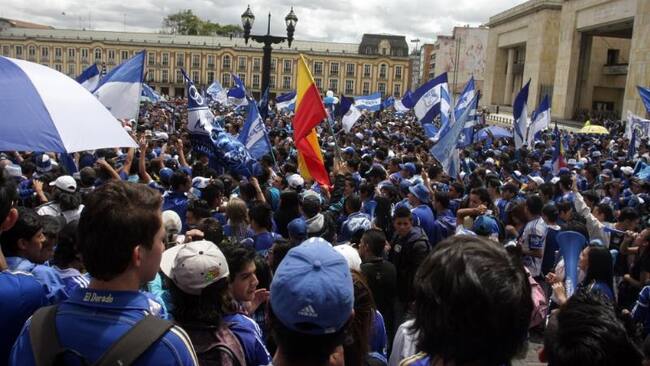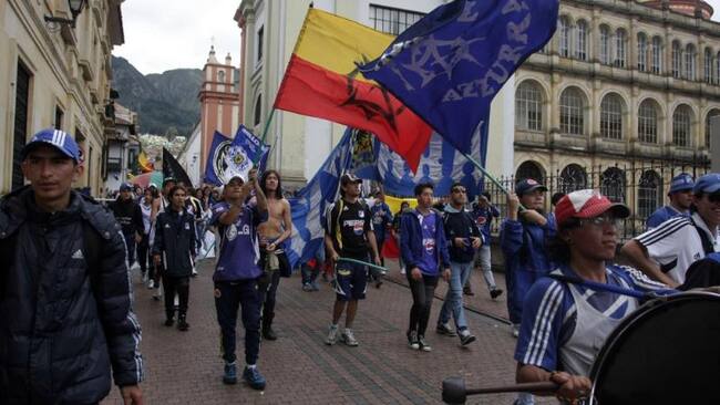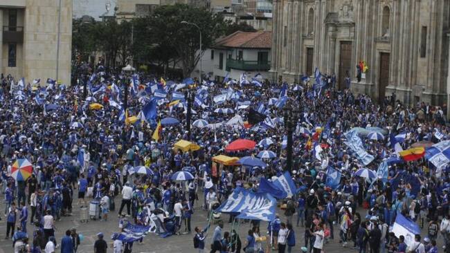 Foto 11 de 12Una marea azul se tomó el centro de Bogotá para celebrar los 67 años de Millonarios. Foto: COLPRENSA ©