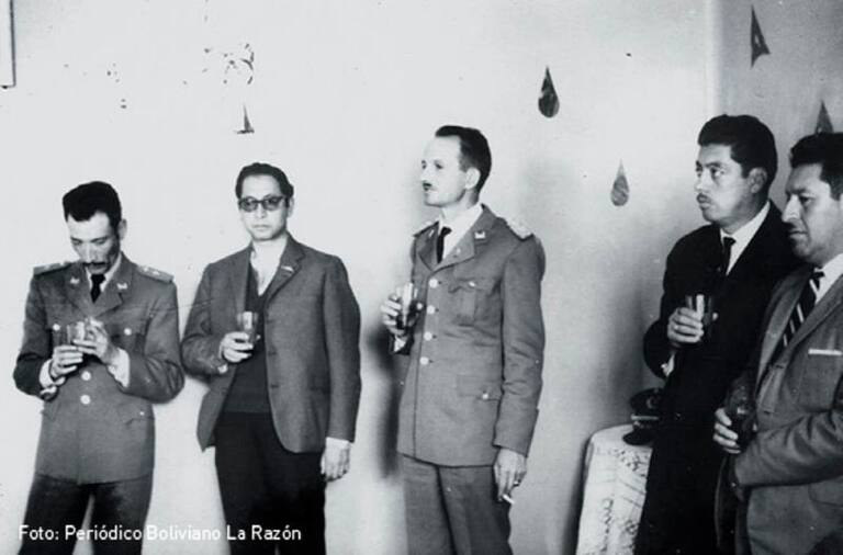 Otra de las fotos obtenidas registra la celebración luego de la muerte del Che, el 9 de octubre de 1967. Quien preside el brindis en la mitad del cuadro es el teniente coronel Andrés Selich. Fue él quien ordenó el traslado del cadáver y su sepultura en una fosa común. Dicen que además robó pertenencias del líder guerrillero.