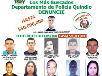 El comandante de la Policía en el Quindío, coronel Ángel Hugo Rojas, indicó que se distribuirán en las principales ciudades los afiches con las fotografías de los delincuentes que conforman el cartel, para que quien logre identificarlos, pueda dar información al respecto