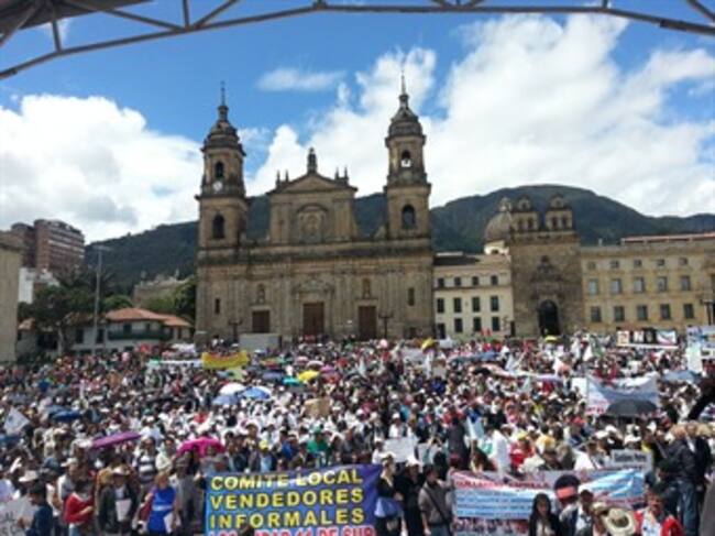 Más de 800 personas permanecen reunidas a esta hora en la Plaza de Bolívar manifestando su apoyo al alcalde de Bogotá Gustavo Petro, quien hasta el momento no se ha hecho presente.