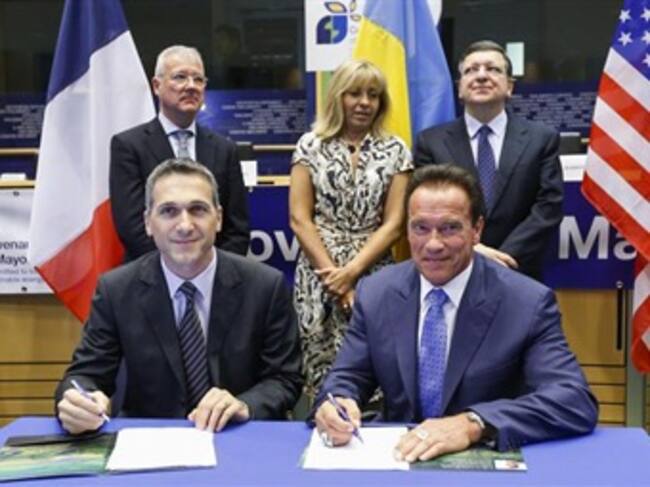 Schwarzenegger, dedicado a la defensa del medio ambiente, mantuvo hoy una entrevista con el presidente de la Comisión Europea (CE), José Manuel Durao Barroso, y participará esta tarde en una conferencia por el desarrollo sostenible y ecológico en Europa en que participaran dos centenares de líderes regionales y locales