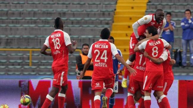 Foto 2 de 6Los jugadores de Santa Fe celebran el gol de Lalinde.