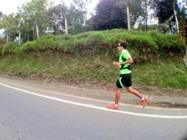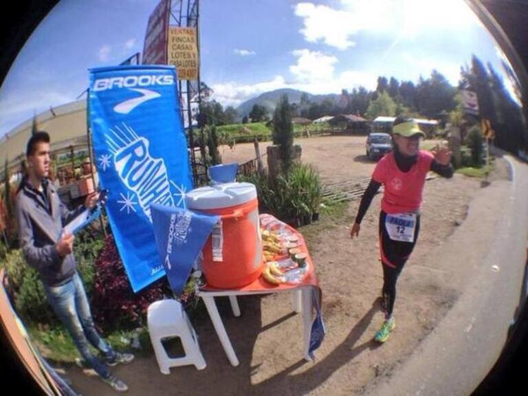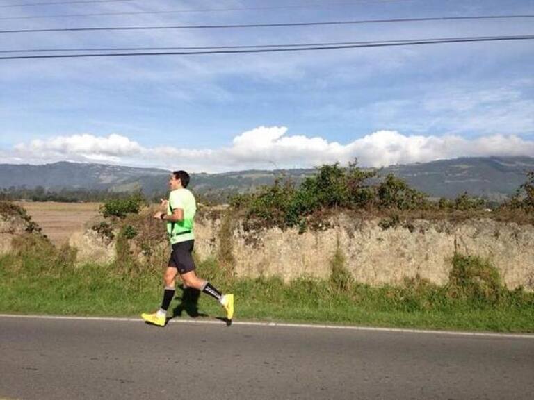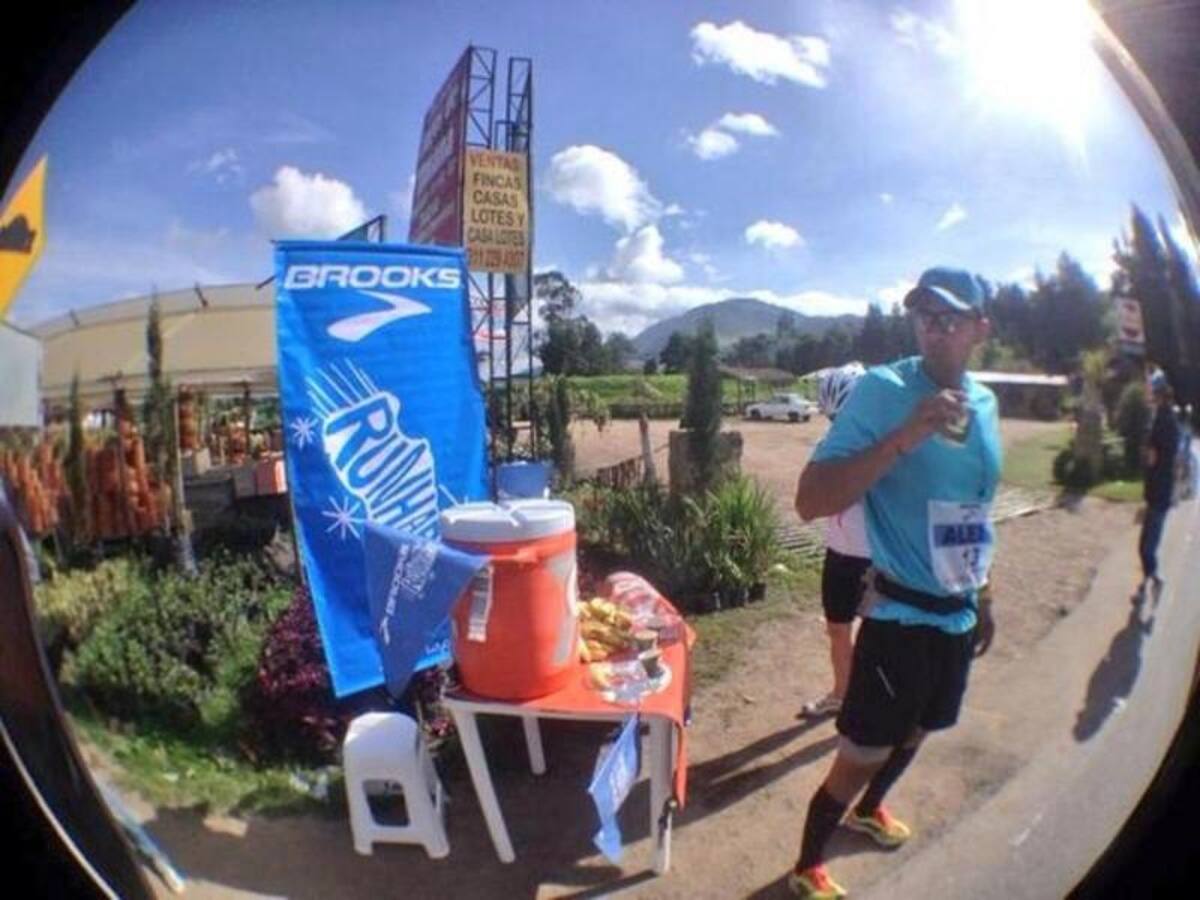 Alejandro Hidalgo en el punto de hidratación del km 46