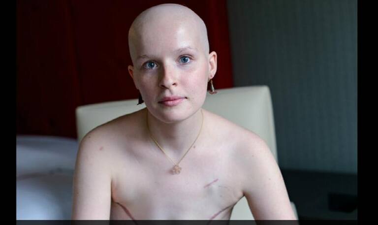 Eliza Hewitt fue diagnosticada cuando tenía 22 años. Una semana después debían hacerle una doble mastectomía. “Así que la noche antes de la operación pensé que si iba a vivir con esto, tenía que saber cómo se veía. Al principio sólo encontré a mujeres mayores de 50 años en internet, hasta que me topé con The Scar. Me dio mucha paz saber que hay una fuerte comunidad de mujeres a las que me podía relacionar”