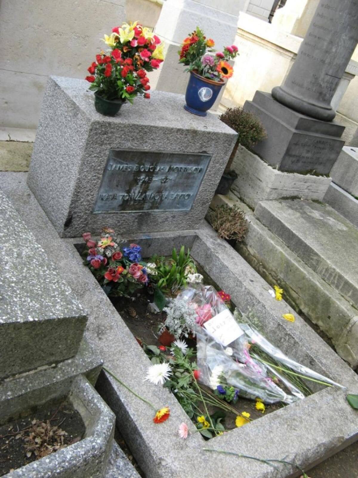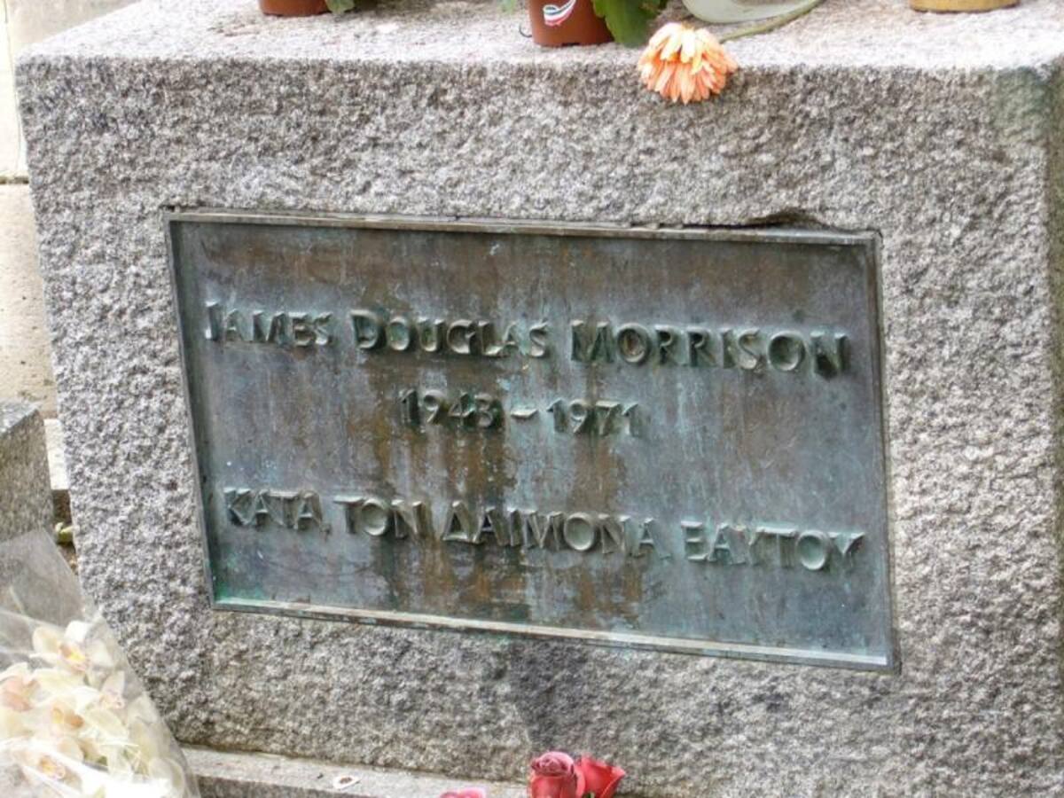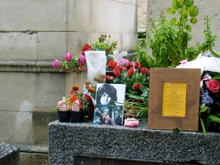 • Tumba de Jim Morrison en el cementerio Père Lachaise, París, Francia.