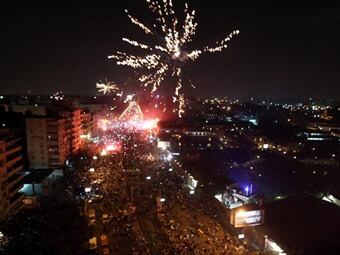 Cientos de miles de personas se concentran en la céntrica plaza ondeando banderas de Egipto y bajo el ensordecedor ruido de los fuegos artificiales.