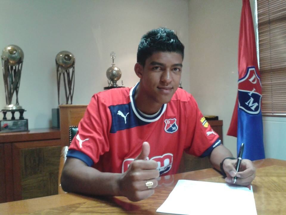 El jugador firmó su vinculación a Independiente Medellín y se vistió con la camiseta roja, que lucirá en el siguiente semestre.