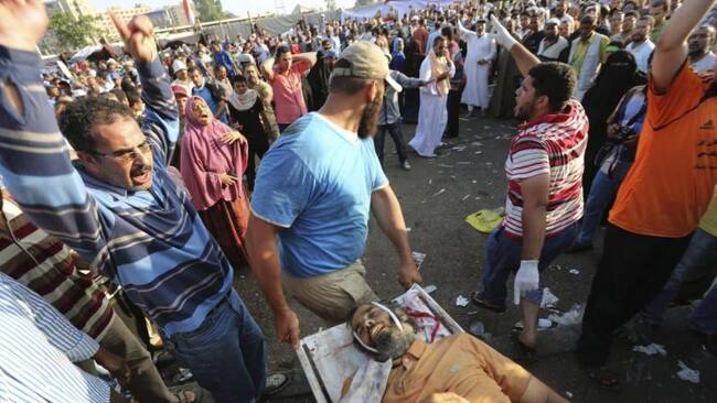 Foto 4 de 12Activistas de los Hermanos Musulmanes evacúan el cadáver de un simpatizante del depuesto presidente egipcio Mohamed Morsi durante un enfrentamiento entre simpatizantes del depuesto presidente y las fuerzas de seguridad en El Cairo (Egipto), 8 de julio de 2013.