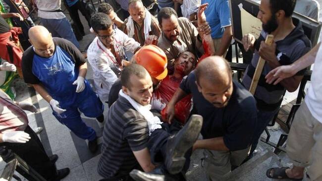 Foto 10 de 12Un partidario del expresidente Mohamed Morsi es trasladado a un hospital de El Cairos tras el tiroteo de esta madrugada entre las fuerzas de seguridad y los partidarios de los Hermanos Musulmanes frente a la sede de la Guardia Presidencial de El Cairo, 8 de julio de 2013.