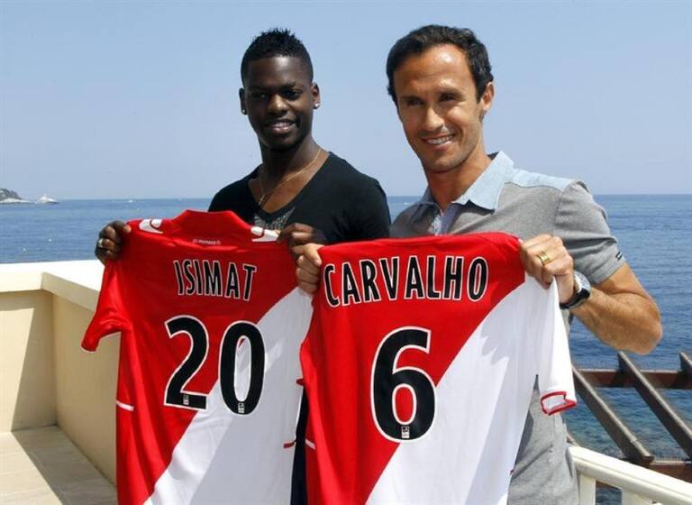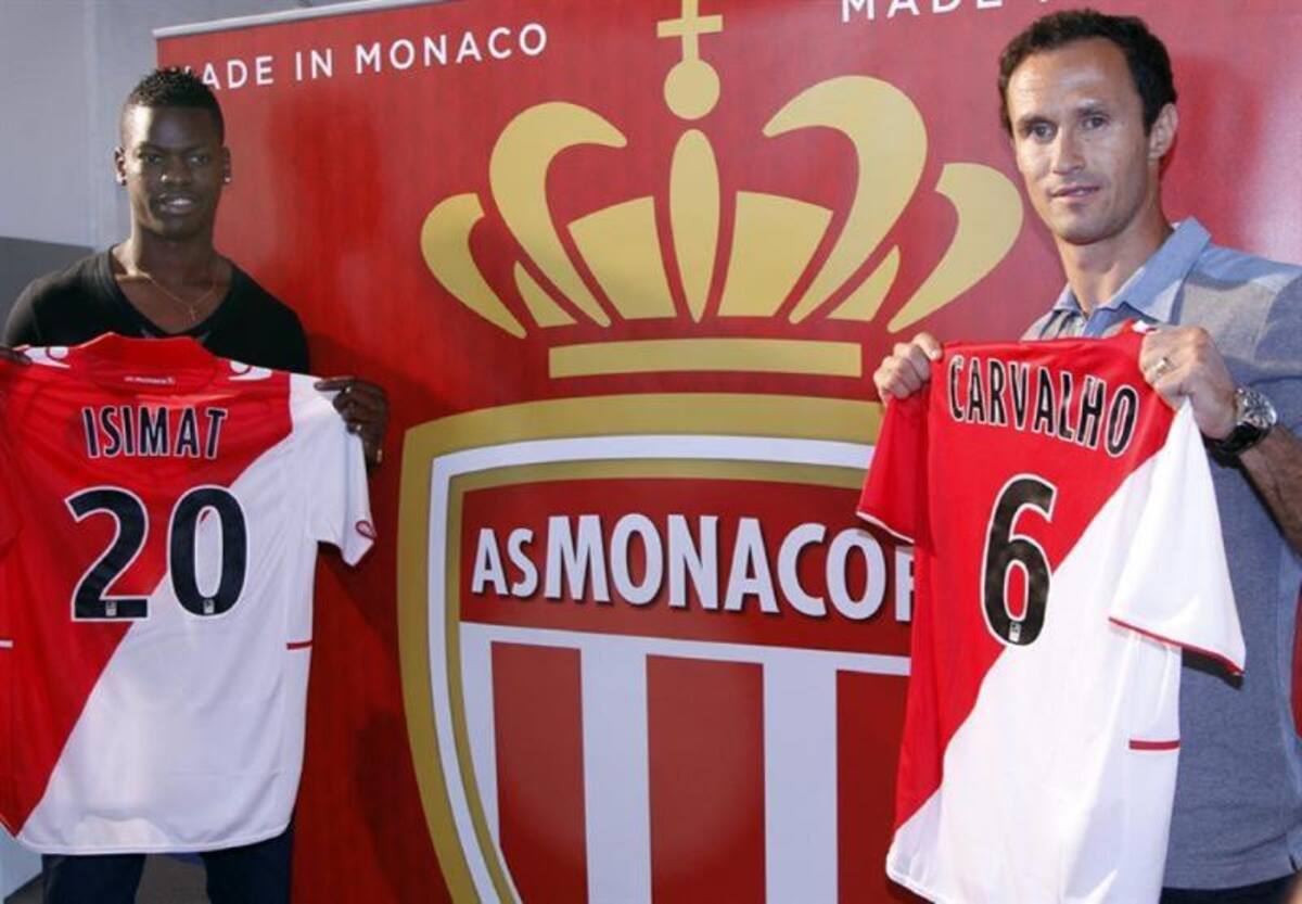 • Los nuevos jugadores del AS Mónaco, el francés Nicolas Isimat-Mirin (izda), y el portugués Ricardo Carvalho, posan durante su presentación