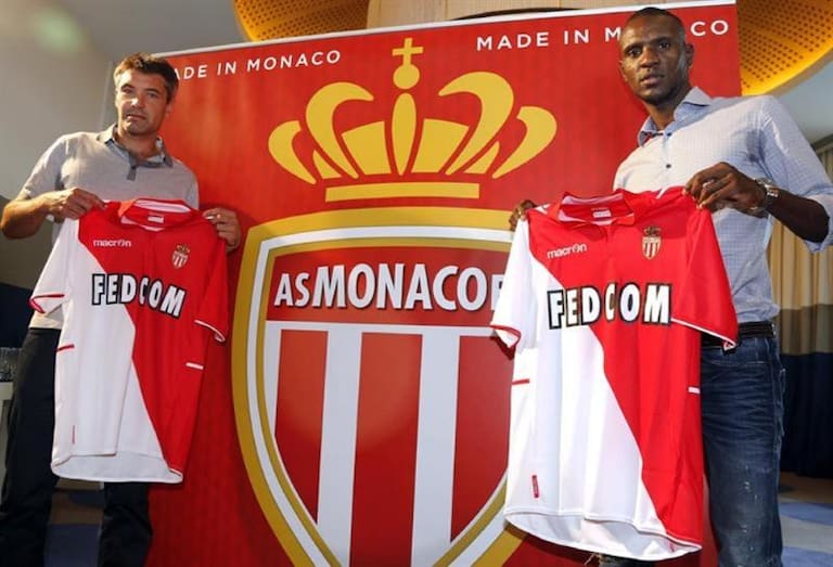 • Los nuevos jugadores franceses del AS Mónaco, Jeremy Toulalan (izda) y Eric Abidal, posan para los medios durante su presentación en Mónaco