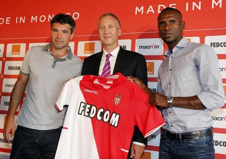 • El nuevo jugador del AS Mónaco, el francés Eric Abidal, ofrece una rueda de prensa durante su presentación
