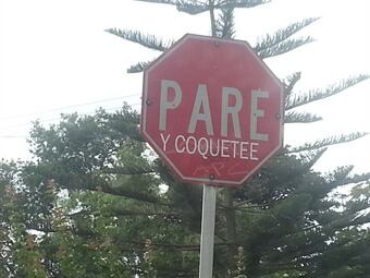 La señal roja con letras blancas de ‘PARE' que conocemos, se lee ahora "PARE y coquetee", "PARE y grite" y "PARE y salude". La gente dice que esas señales modificadas provocan distracción e incluso, accidentes