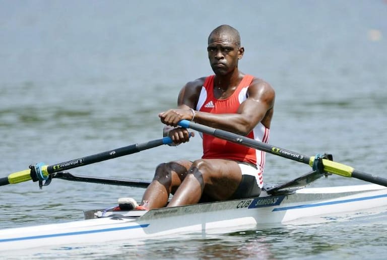 El cubano Ángel Fournier Rodríguez participa en la prueba de scull masculino de la Copa del Mundo de Remo disputada en el lago Rotsee en Lucerna (Suiza). EFE/Urs Flueeler