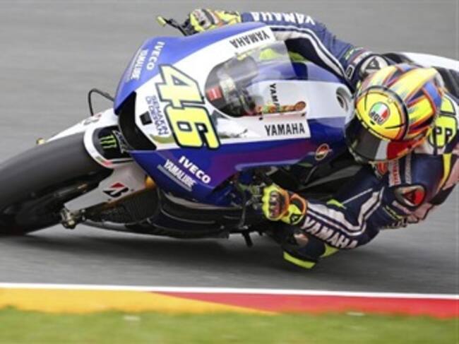 El piloto italiano de MotoGP Valentino Rossi (Yamaha YZR M 1) participa en la sesión de entrenamiento libre en el circuito Sachsenring en Hohenstein-Ernstthal (Alemania). El Gran Premio de Alemania se celebra el próximo domingo. EFE/Jan Woitias