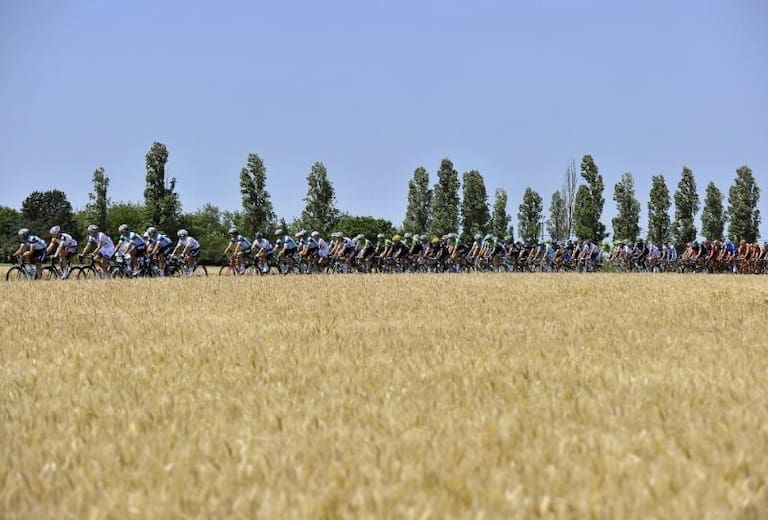 El pelotón al completo se prepara para el comienzo de la 13ª etapa del Tour de Francia, entre Tours y Saint-Amand-Montrond. EFE/Nicolas Bouvy