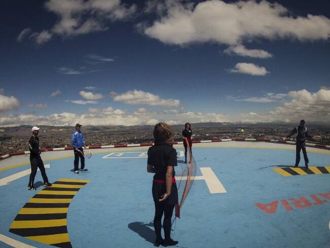 Foto 8 de 8Durante la exhibición que los tenistas realizaron en el helipuerto de la Torre Colpatria.