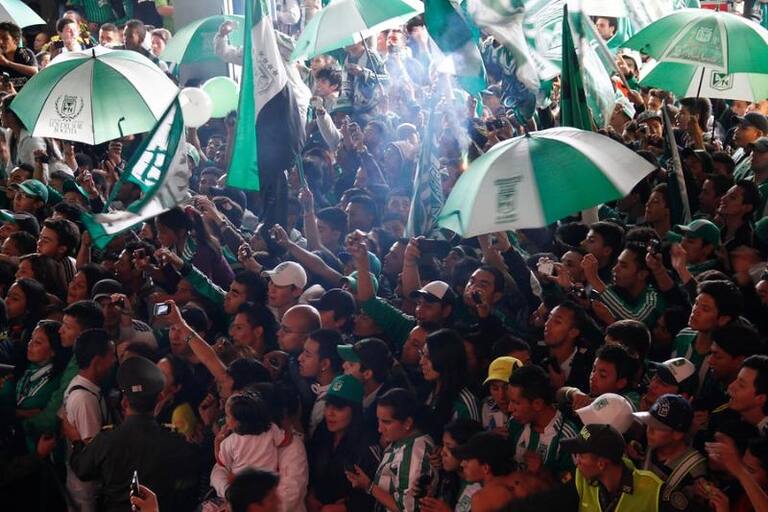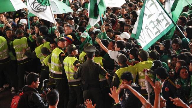 Atlético Nacional tiene apoyo masivo de los hinchas de Nacional en Bogotá y a pesar de que no pueden estar en El Campín, sí acompañan al equipo en la disputa de su duodécima estrella.