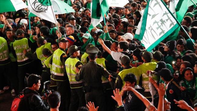 Foto 6 de 10Atlético Nacional tiene apoyo masivo de los hinchas de Nacional en Bogotá y a pesar de que no pueden estar en El Campín, sí acompañan al equipo en la disputa de su duodécima estrella.
